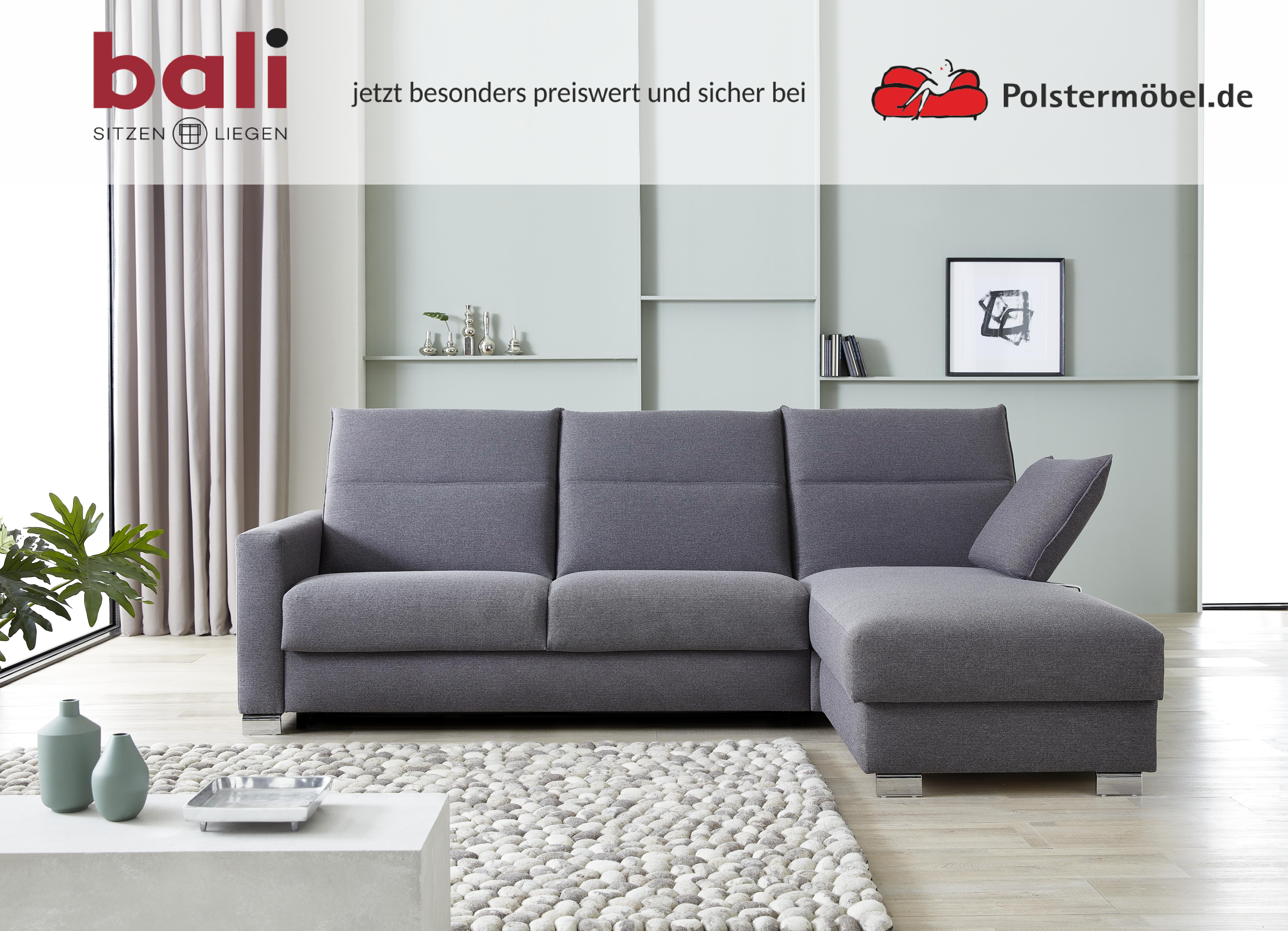 Bali Polstermöbel bietet erstklassige Qualität Made in Germany und stehen für eine besonders hohe Qualität, hochwertige Bezugsstoffe und eine hervorragende Polsterung. Die Produkte garantieren eine ermüdungsfreies Langzeitsitzen und eine hohe Strapazierfähigkeit. Die Funktions- und Schlafsofas überzeugen durch ihr frisches Design mit modernen Formen und aktuellen Farben. Wählen Sie unter Bali Sofas Ihren persönlichen Favoriten.